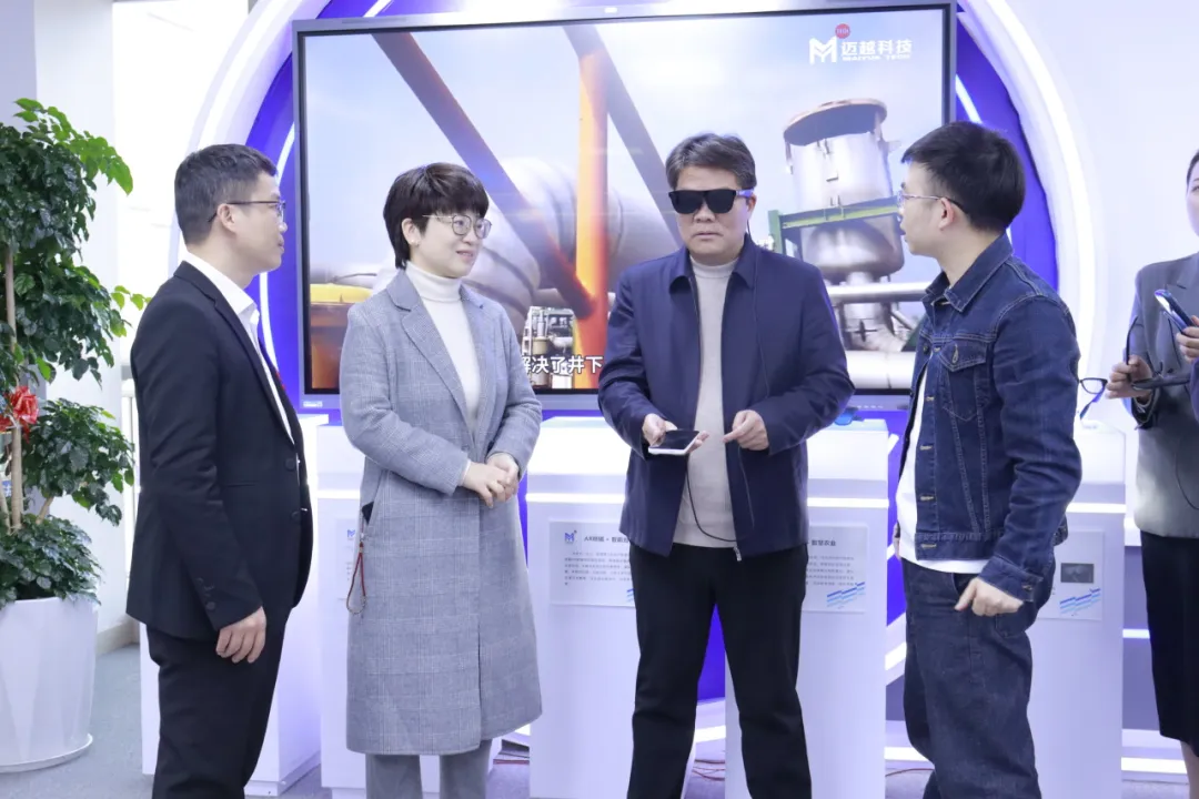 黄有章代表迈越科技向考察团一行表示热烈欢迎。在展厅参观时,他向代表团重点介绍了公司在AI技术领域的创新成果及面向桂林特色文旅场景的定制范例;结合漓江风景区的实际情况,详细讲解了如何通过将AI技术融入AR眼镜,打造适配景区的智能导览助手,并提供语音与手势交互的沉浸式游览体验,从而助力景区提升文旅服务效能。