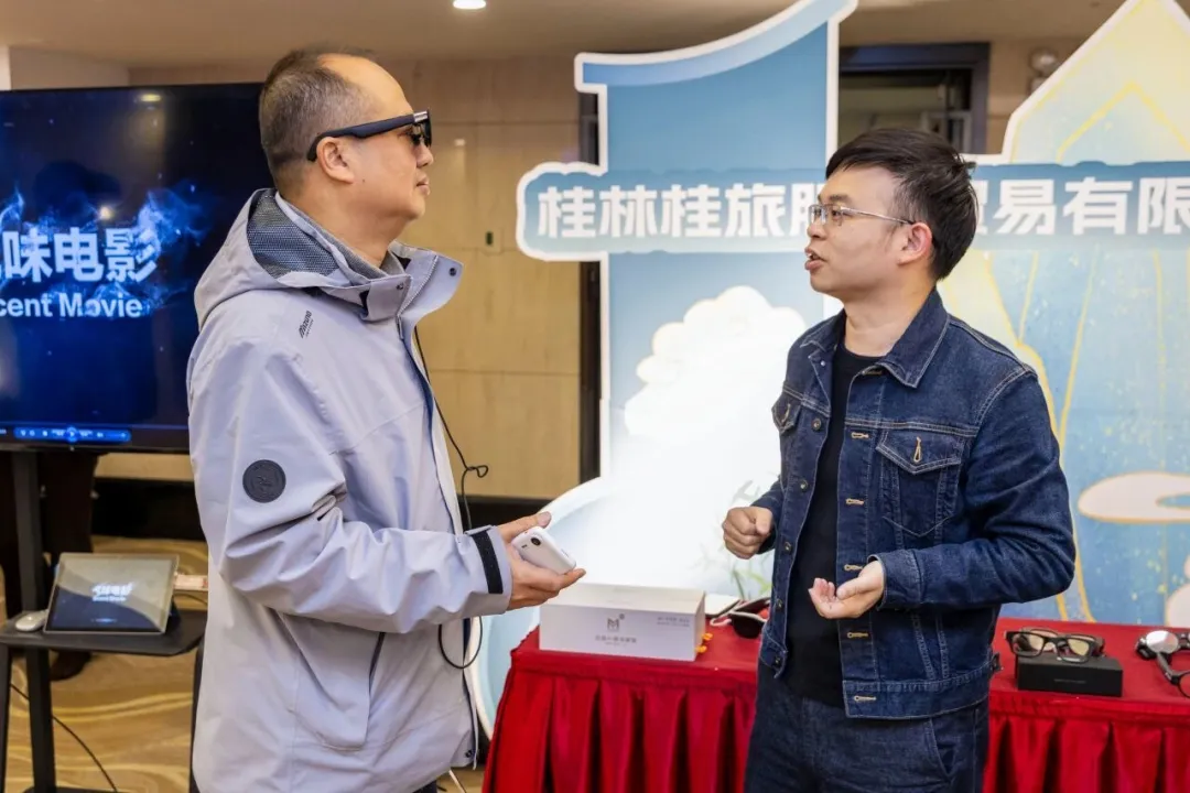 会场体验区,与会者佩戴上迈越科技研发的轻盈AI智能眼镜,视线所及的漓江画卷、象山风光瞬间被激活。诗词注解如云雾般浮现在山水之间,历史故事随视角移动娓娓道来,地质构造通过三维动态清晰呈现。一位资深文旅行业观察者在体验后表示:“这副眼镜重新定义了‘观看’——它让静态的风景变成了可对话、可探索的文化现场。”多位景区运营负责人则评价:“技术嵌入自然而不突兀,体验流畅,知识性和趣味性平衡得很好,为传统景区的深度游览提供了可落地的解决方案。”