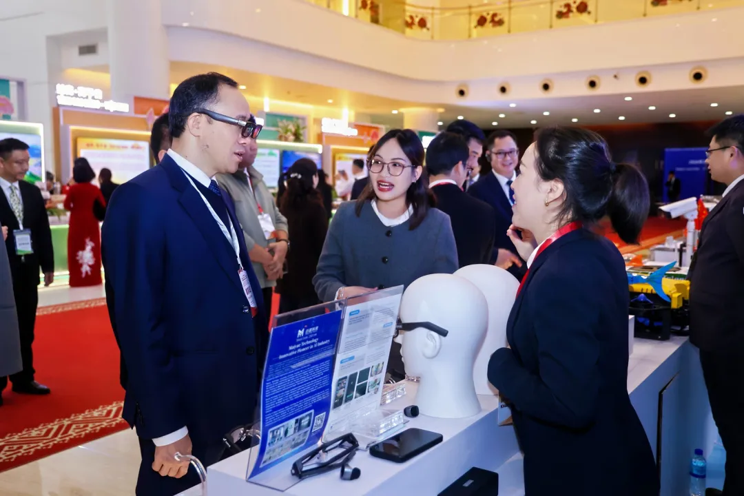 活动期间,迈越科技重点展示了智能AR眼镜、AI翻译提词眼镜、双屏翻译机等多款核心产品,彰显“广西智造”实力,助力桂越双边科技文化交流。