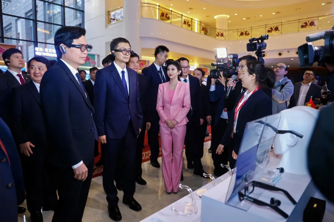 文旅推介会上中越双方与会领导嘉宾体验迈越智能AR眼镜