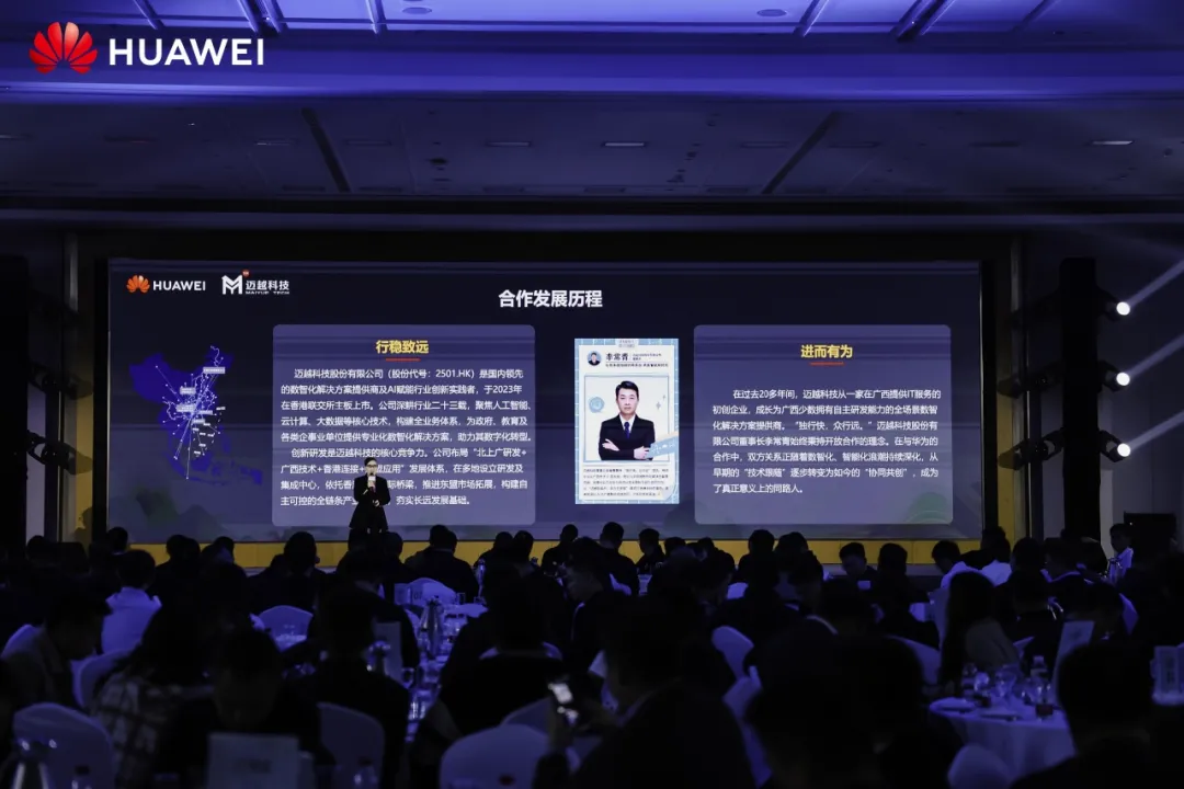 作为华为在广西的核心战略合作伙伴,迈越科技与华为的携手之路步步深耕,双方将技术与行业需求深度融合,深化生态合作。迈越科技也在华为的见证下,从一家初创IT服务企业成长为广西少数具备自主研发能力的全场景数智化解决方案提供商。迈越科技通过“北上广研发+广西技术+香港连接+东盟应用”的发展体系,构建起自主可控的全链条产业生态圈,为深度合作奠定坚实基础。