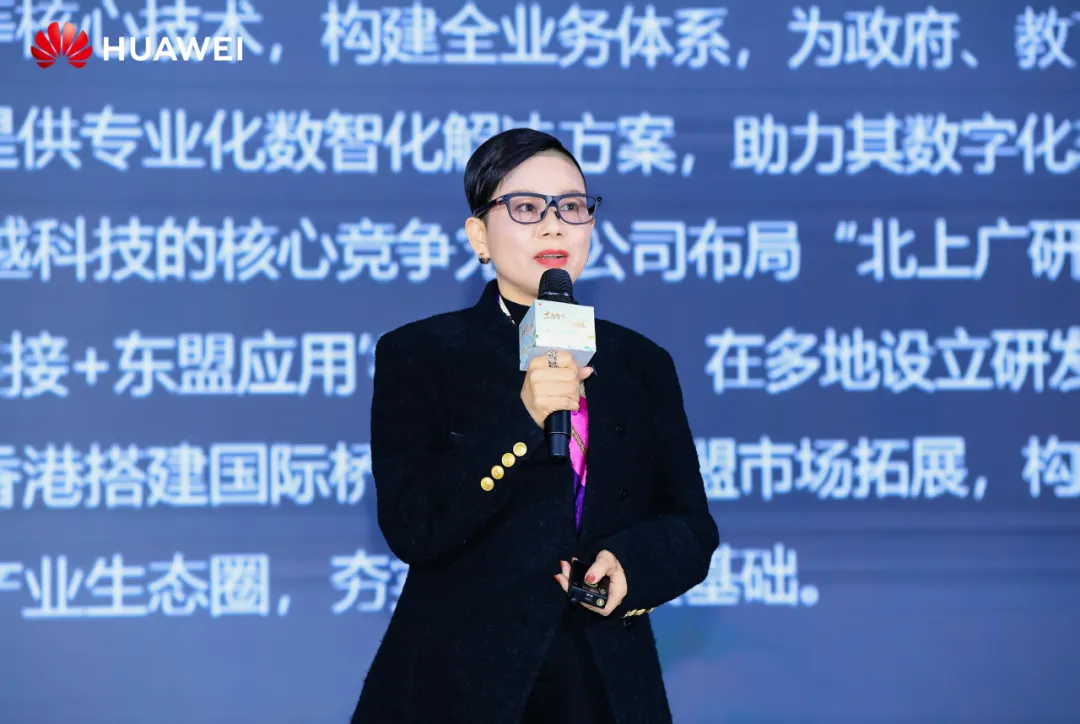 3月10日,2026年华为广西政企合作伙伴大会暨2025年度合作伙伴答谢会在华为广西园区举行,迈越科技执行董事、CEO邓彩蝶作为核心合作伙伴代表出席大会并发表主题演讲。