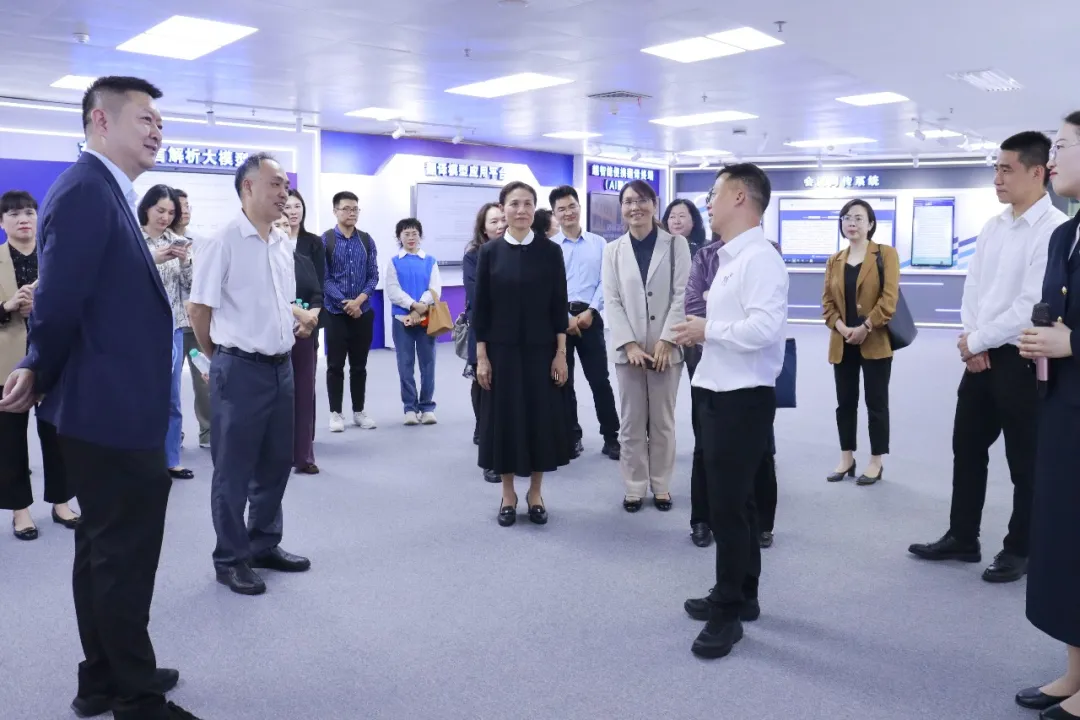 调研团一行首先参观了企业展厅。李常青向调研团详细介绍了公司在人工智能领域的技术积累与成果,重点展示了AI智能体平台、多语言教学翻译一体机、智能眼镜、翻译模型应用平台等具备多场景适配能力的核心产品,并表示相关的技术与产品可根据医疗场景的需求进行定制化开发部 署,得到调研团一致认可。